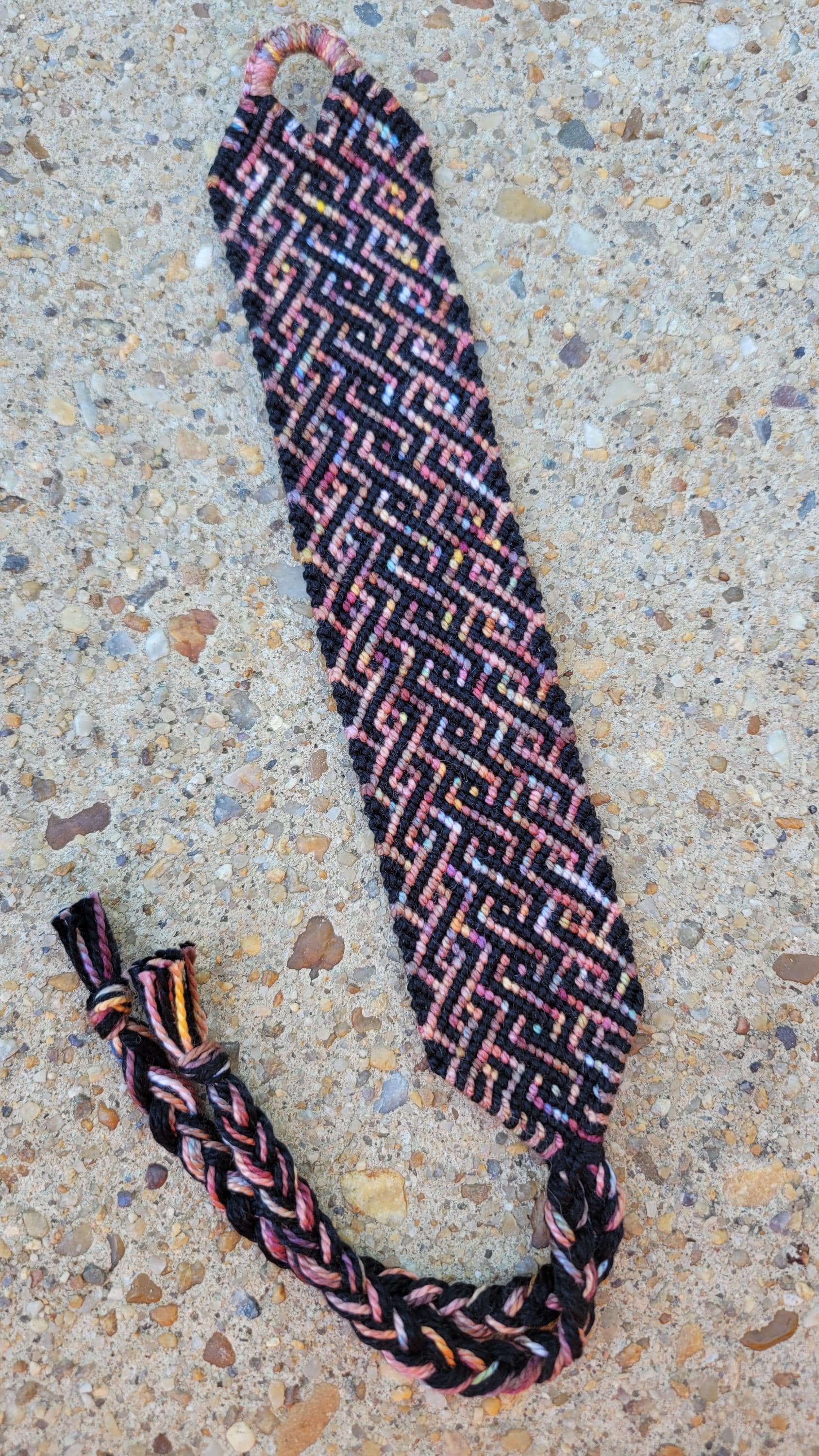 Hand Knotted using my custom colored embroidery threads, hand dyed by me.